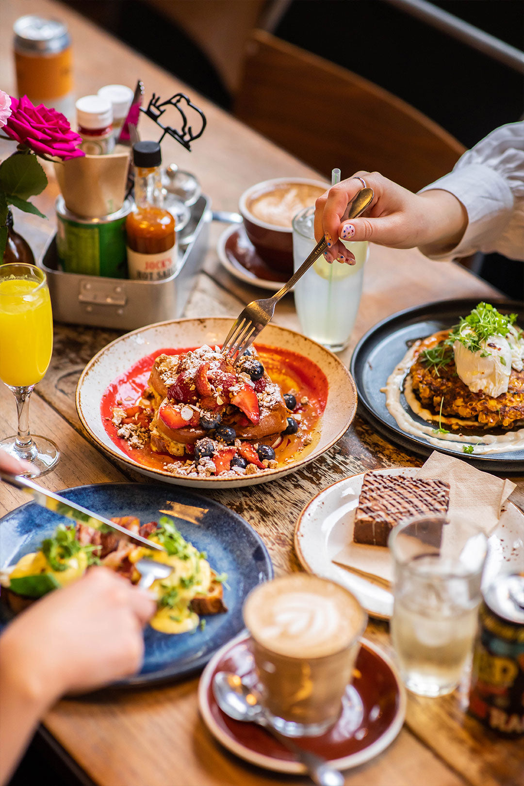 Fancy a drink? We've got you sorted. Coffee that's actually worth queuing for, proper teas, fresh juices, and when you're ready to celebrate - wine, beer, and cocktails that know what they're doing.